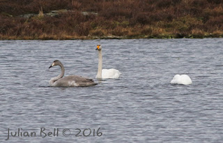 Highlight was a first year male Scaup bergand. Singles of Redwing rødvingetrost and Fieldfare gråtrost were present and I saw the first flock of Chaffinches bokfink I've seen for a while. Other stuff included 11 adult Whoopers sangsvane, a few White-tailed Eagle havørn and the usual Crested Tits toppmeis.